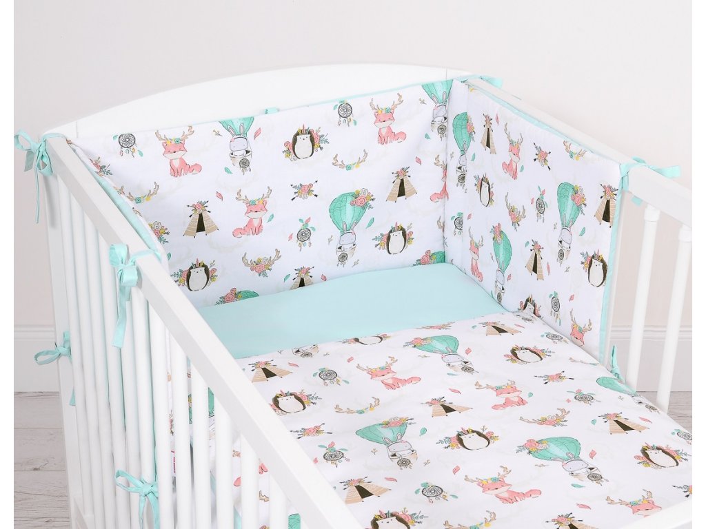 Mantinel se k postýlce se snadno připevňuje pomocí šňůrek. Bavlna se nežmolkuje a neztrácí své vlastnosti ani po mnoha praních.