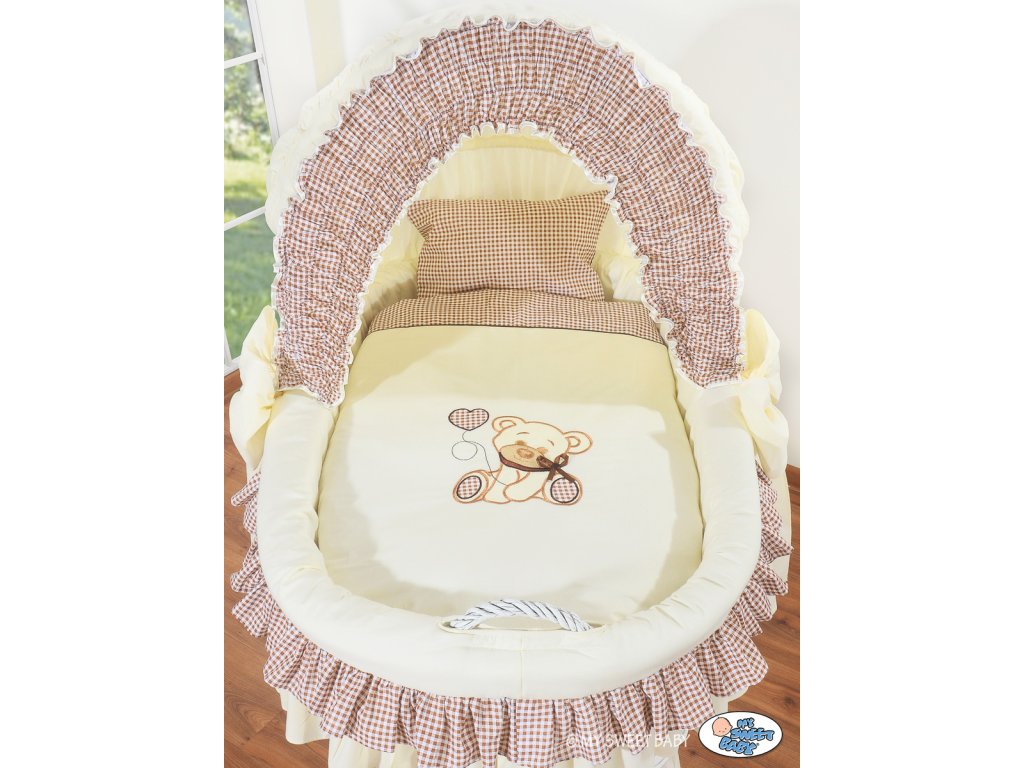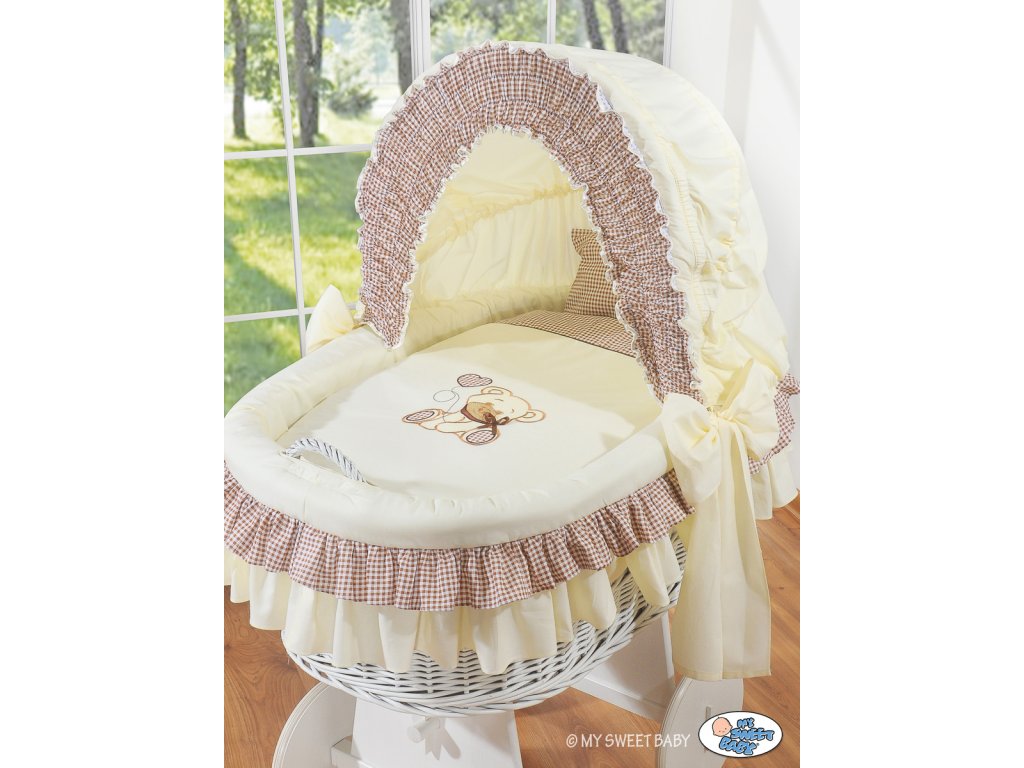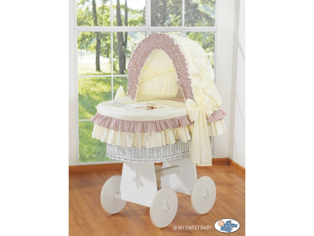Mojžíšův koš s velkými koly a skládací boudou Bílý - Méďa s mašlí krémovo-hnědá