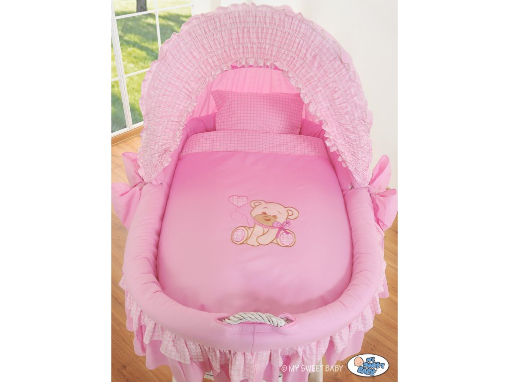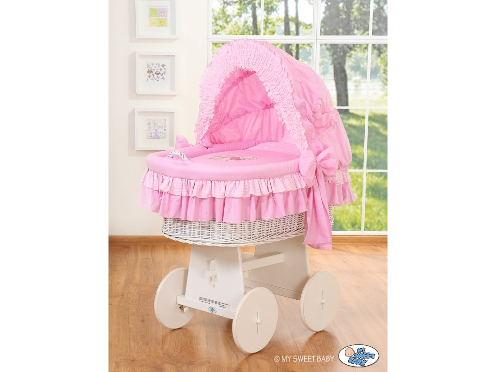 Mojžíšův koš s velkými koly a skládací boudou Bílý - Méďa s mašlí růžová