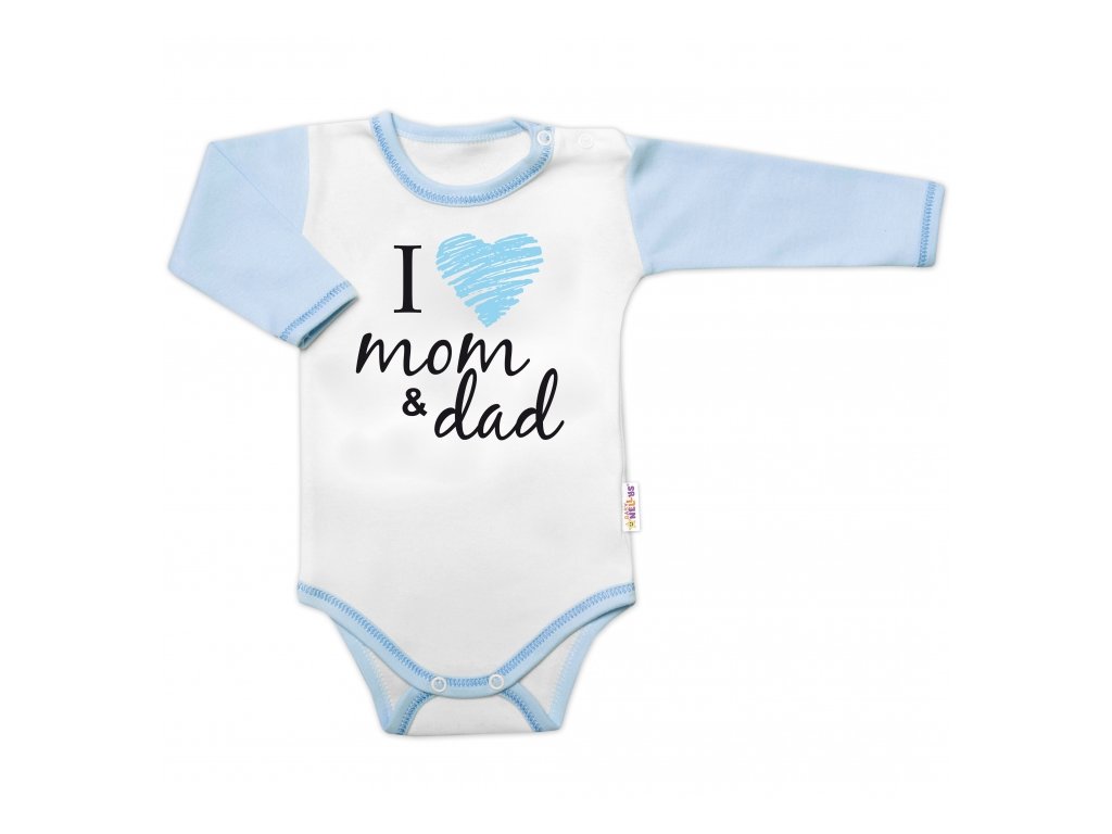 Body s dlouhým rukávem - I love mom and dad s modrou, vel. 62, 68 a 80