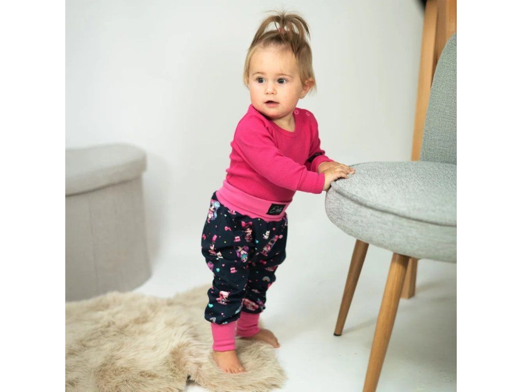 Dlouhé náplety na rukávech se "odbalují", ohrnují tak, jak miminko roste
