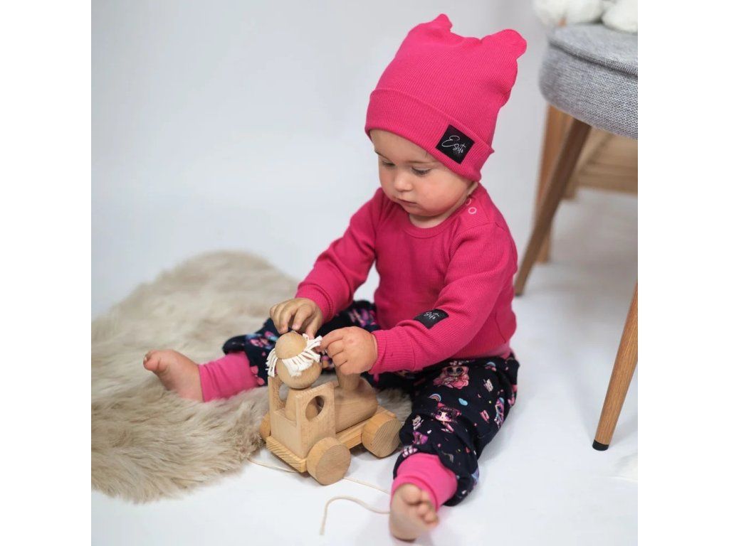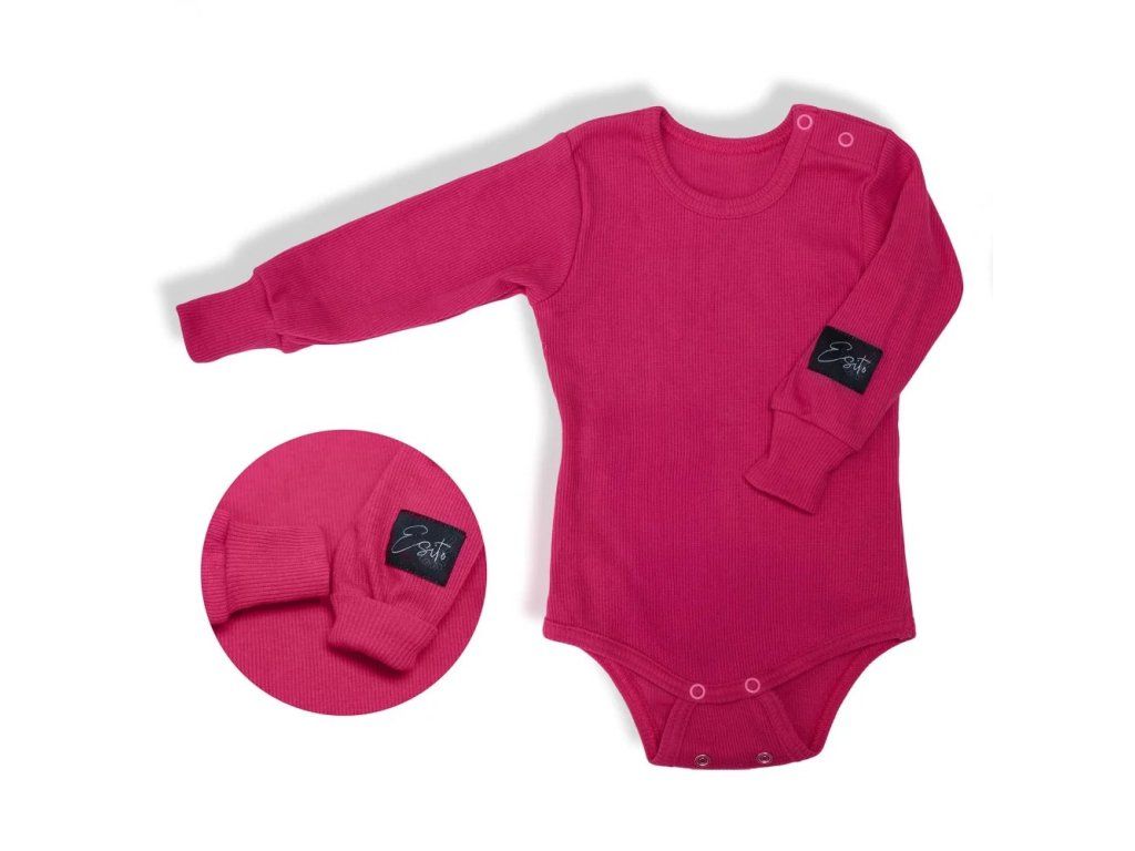 Rostoucí žebrované body s dlouhým rukávem - Color hot pink