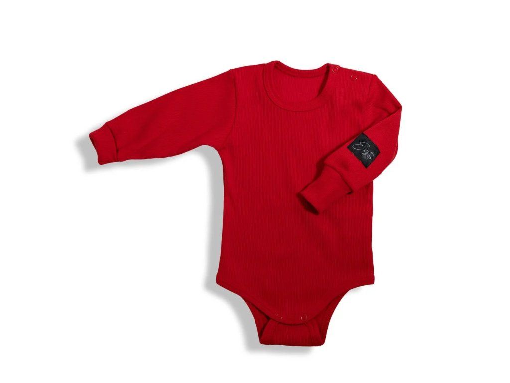 Rostoucí žebrované body s dlouhým rukávem - Color red