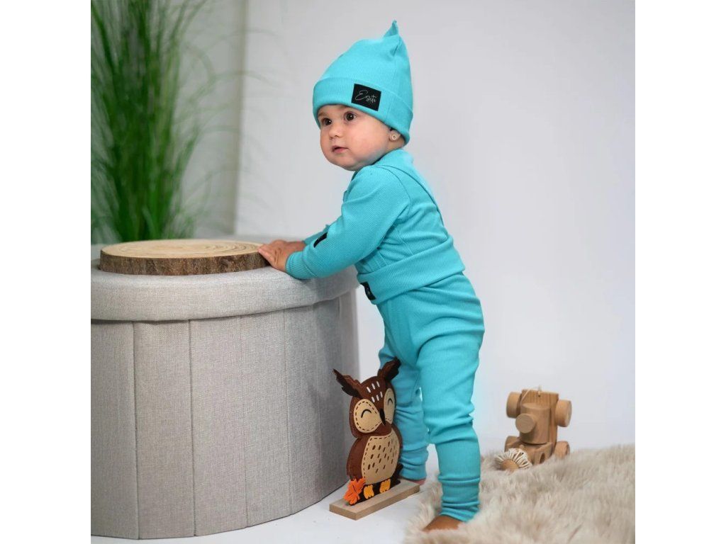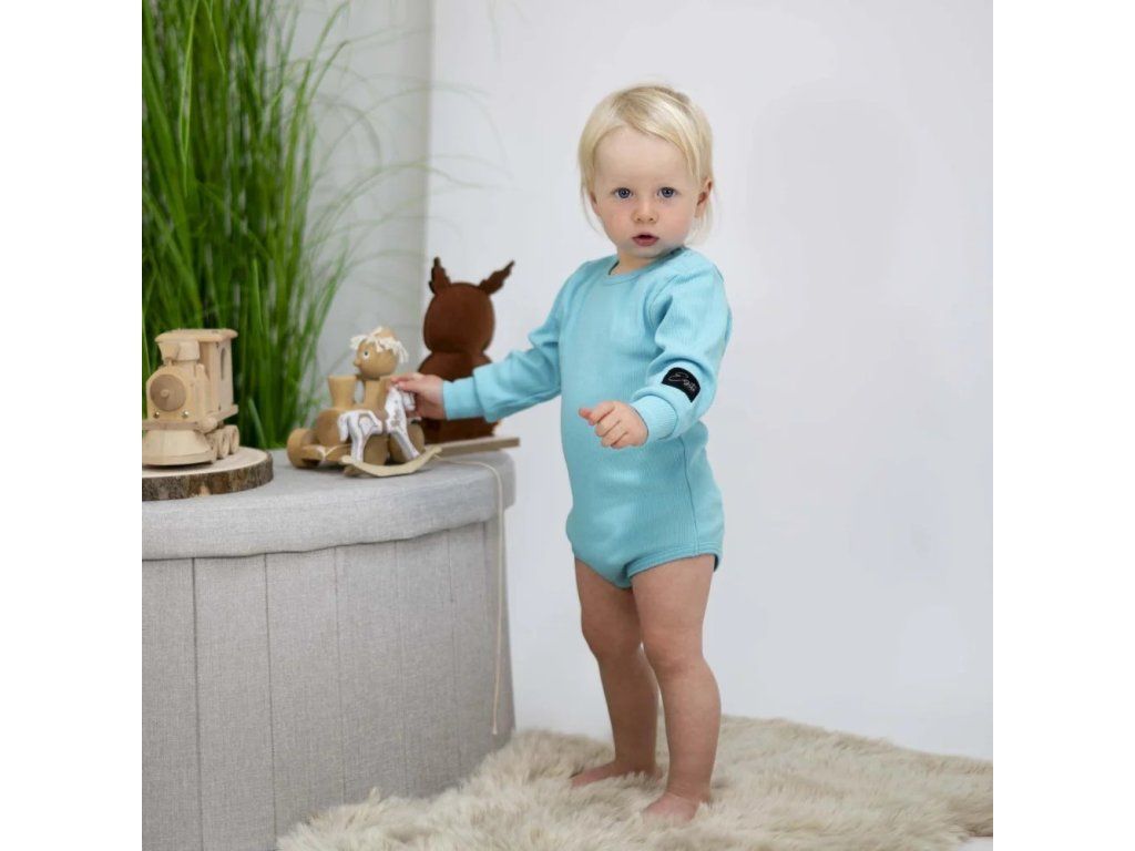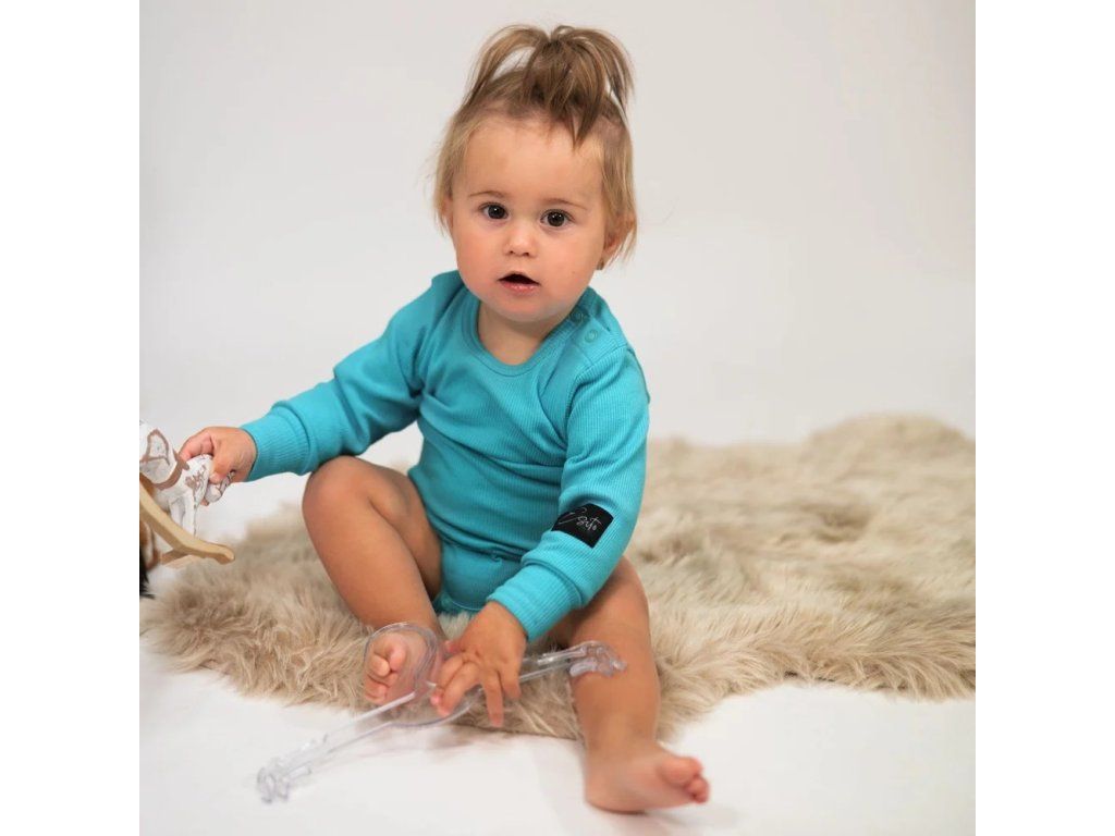 Rostoucí žebrované body s dlouhým rukávem - Color turquoise