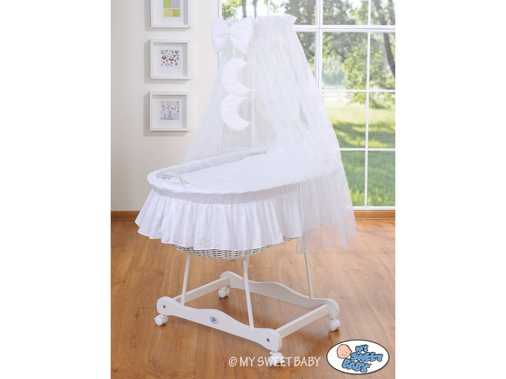 Mojžíšův koš s malými kolečky a nebesy Bílý - Dobrou noc bílá