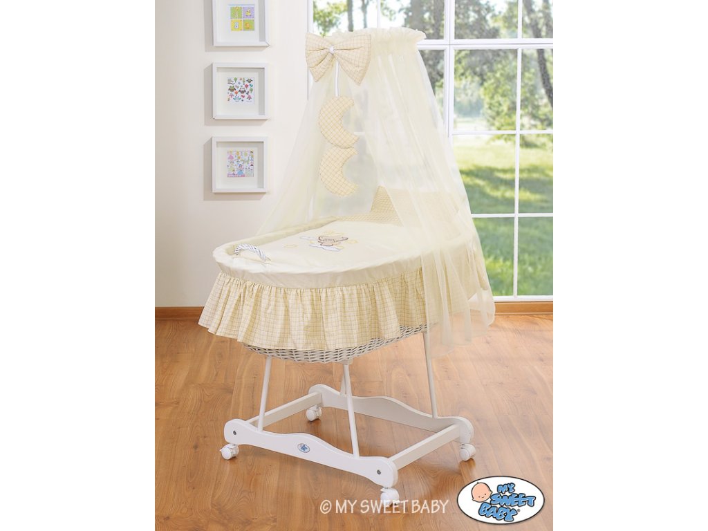 Mojžíšův koš s malými kolečky a nebesy Bílý - Dobrou noc krémová