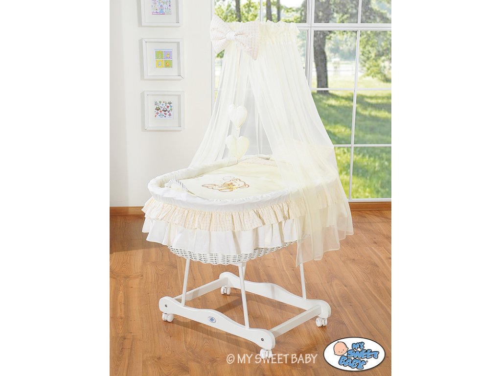 Mojžíšův koš s malými kolečky a nebesy Bílý - Míša krémový