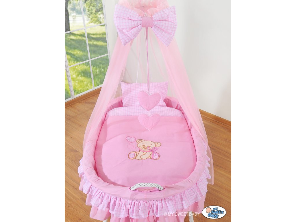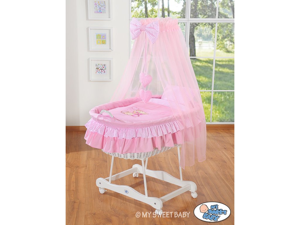 Mojžíšův koš s malými kolečky a nebesy Bílý - Míša růžový