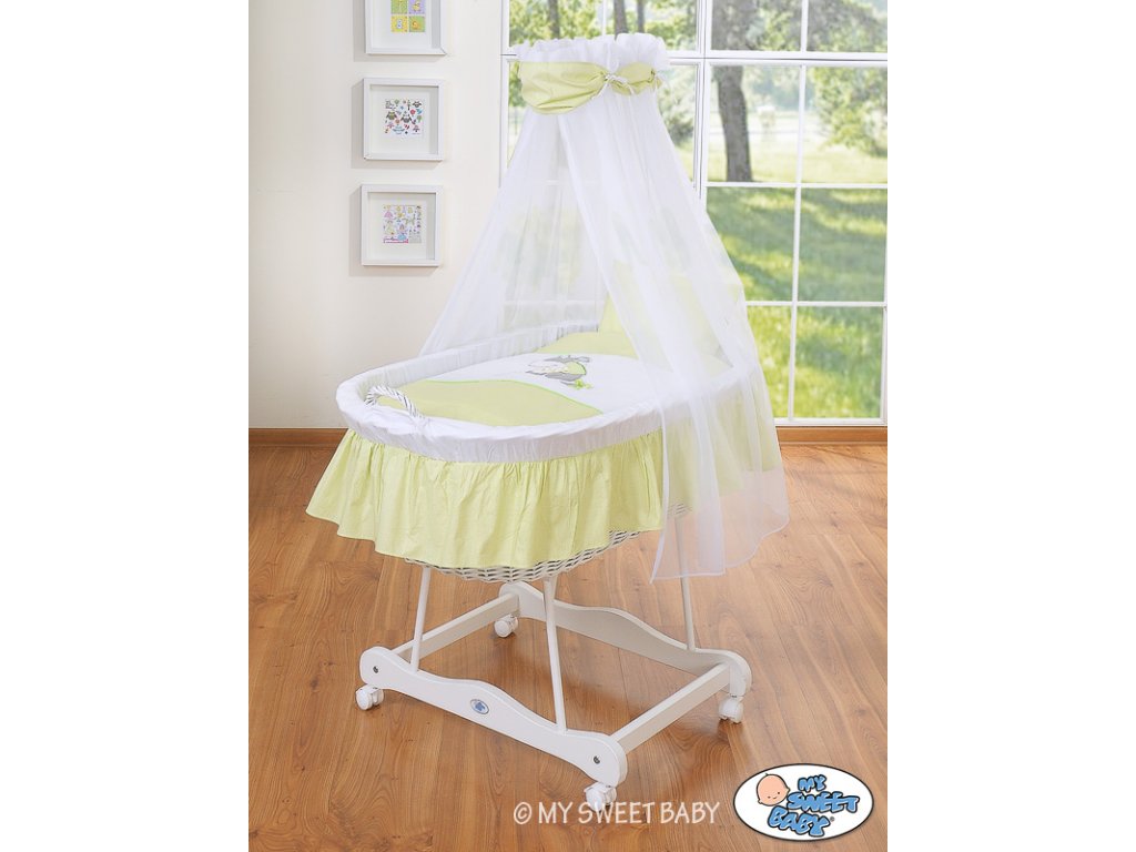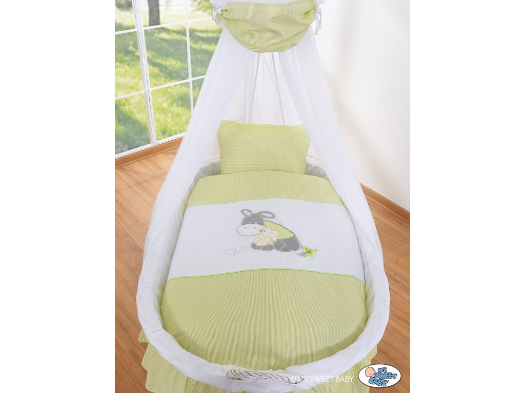 Mojžíšův koš s malými kolečky a nebesy Bílý - Oslík zelená