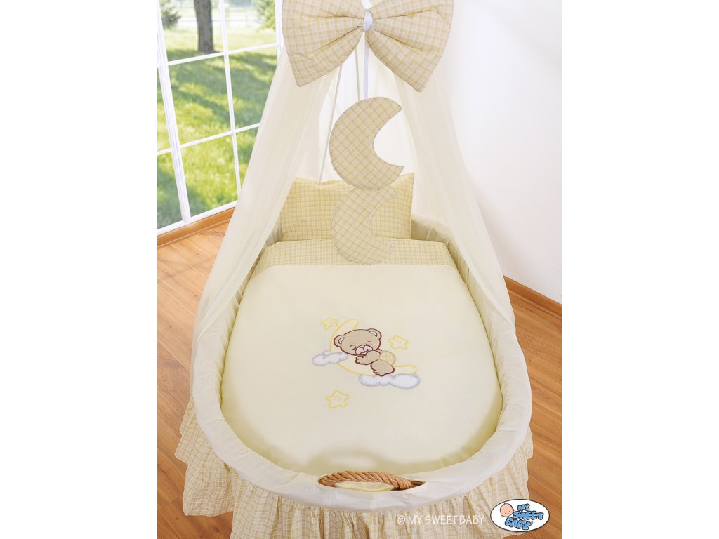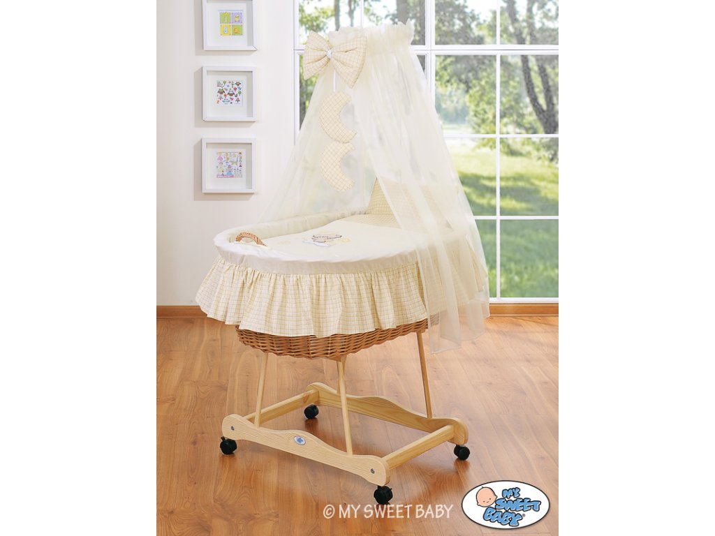 Mojžíšův koš s malými kolečky a nebesy Natural - Dobrou noc krémová