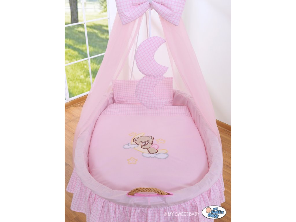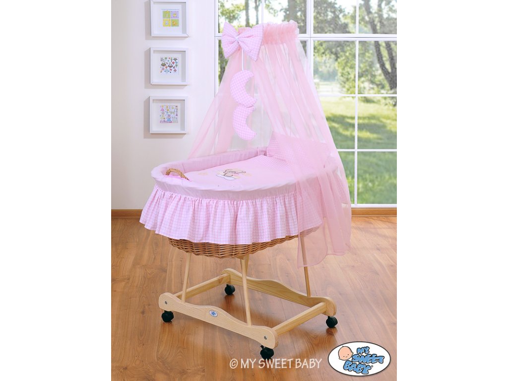 Mojžíšův koš s malými kolečky a nebesy Natural - Dobrou noc růžová