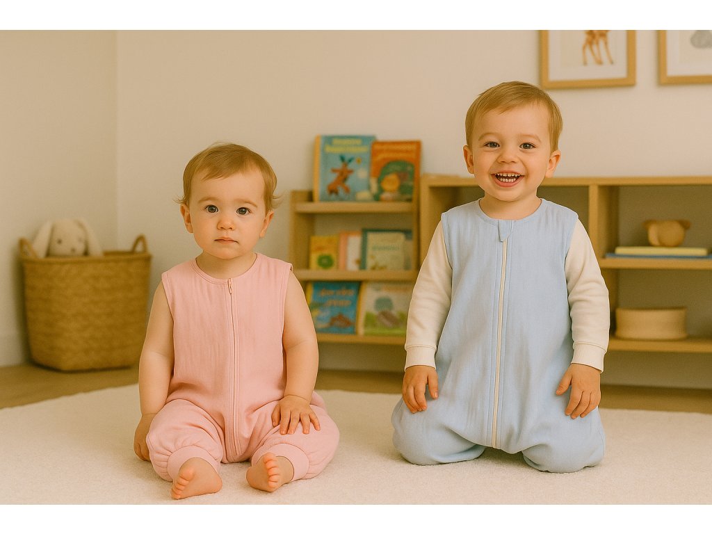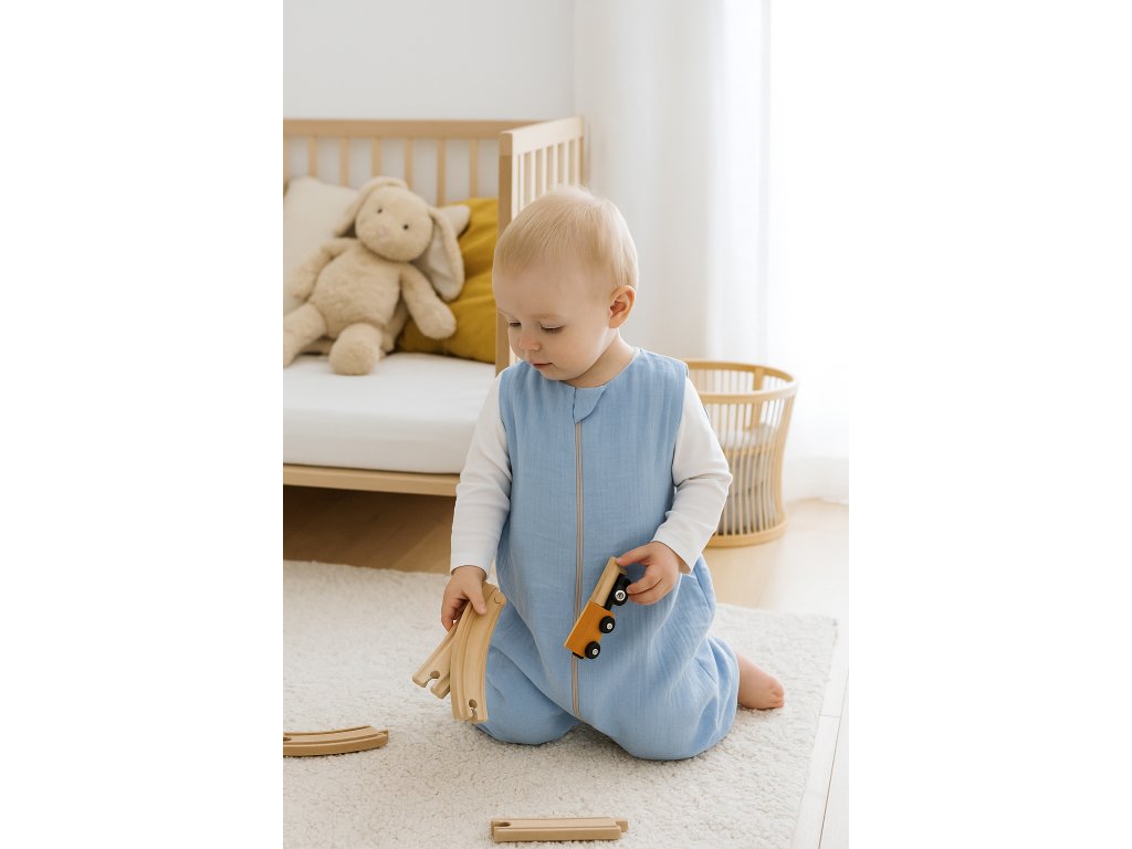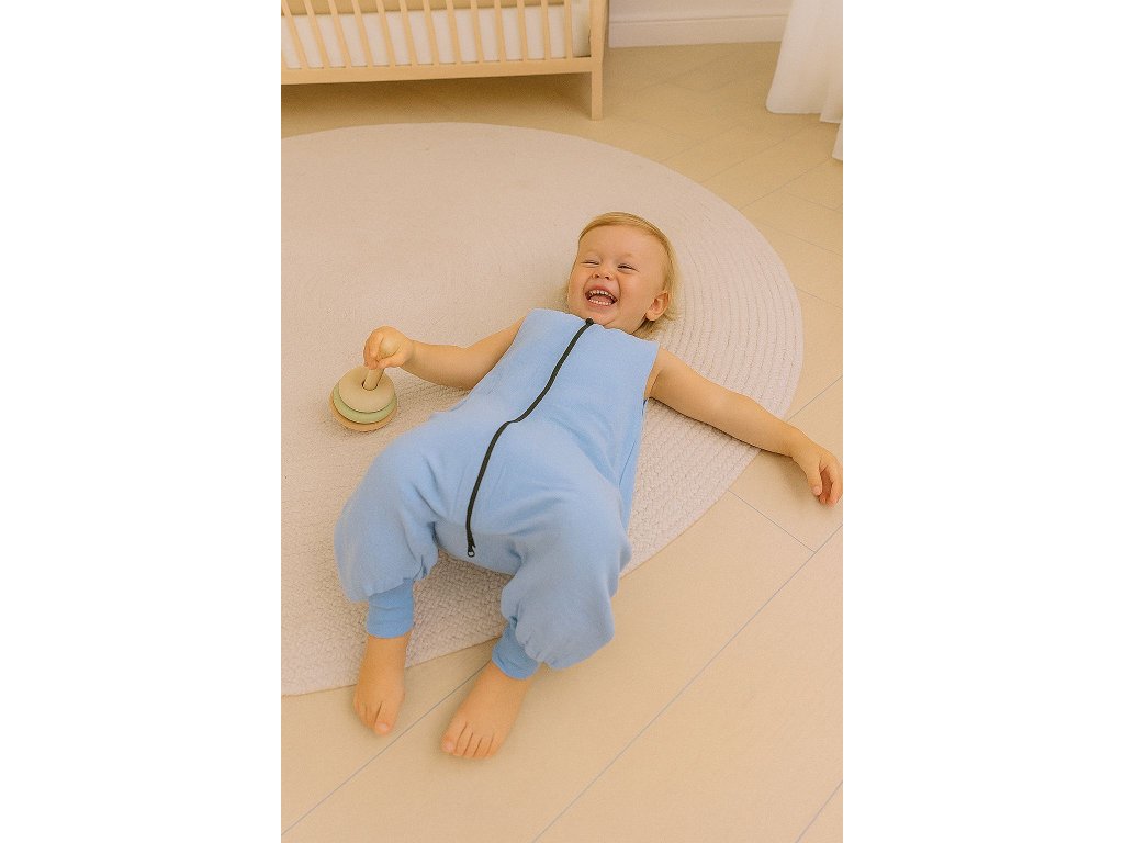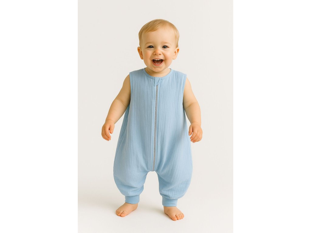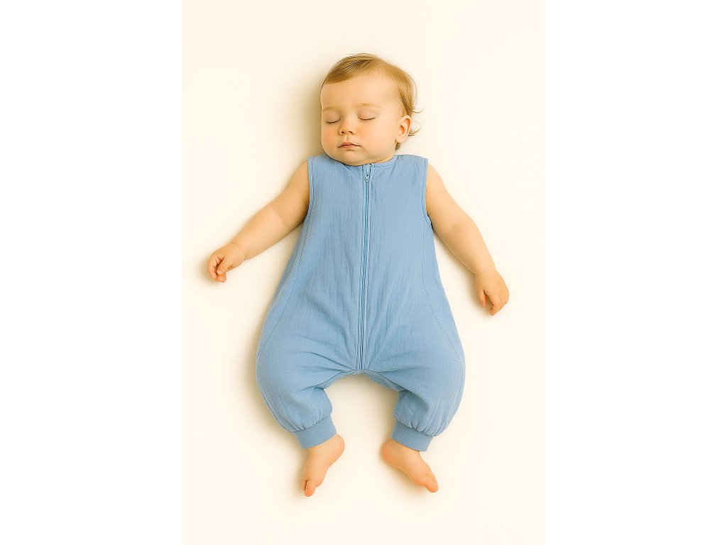 Letní mušelínový spací vak s nohavičkami - Modrá