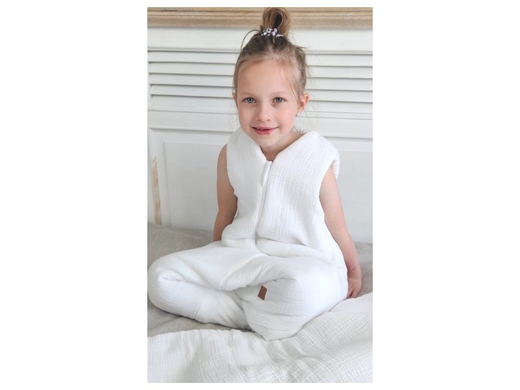 Spací pytel s nohavičkami zaručuje správné zabalení a přikrytí dítěte po celou noc bez nutnosti kontroly, zda se v postýlce neodkopalo a není mu zima. Je také ideální pro děti, které milují noční "procházky". Díky speciálním otvorům v nohách - nohavicím se může dítě volně pohybovat. Během spánku si může nožičky schovat, jako v klasickém vaku. Tím, že je bez rukávků zajišťuje vynikající ventilaci během spánku. Střih ve tvaru hrušky poskytuje větší svobodu a volnost pohybu. Spací pytel lze používat po celý rok.