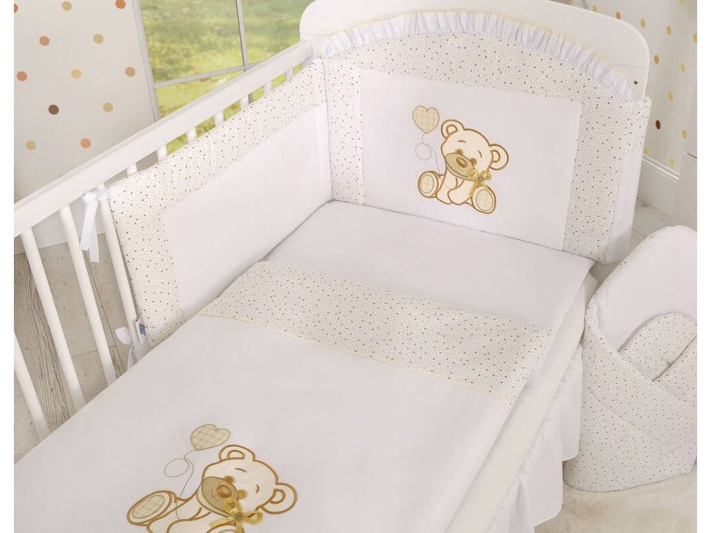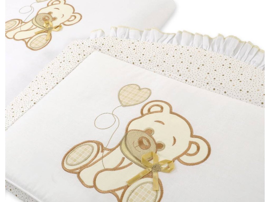Povlečení s mantinelem - Méďa s mašlí bílá/mini hvězdičky zlaté