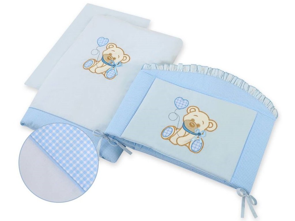 Povlečení s mantinelem - Méďa s mašlí modrá/kostička modrá