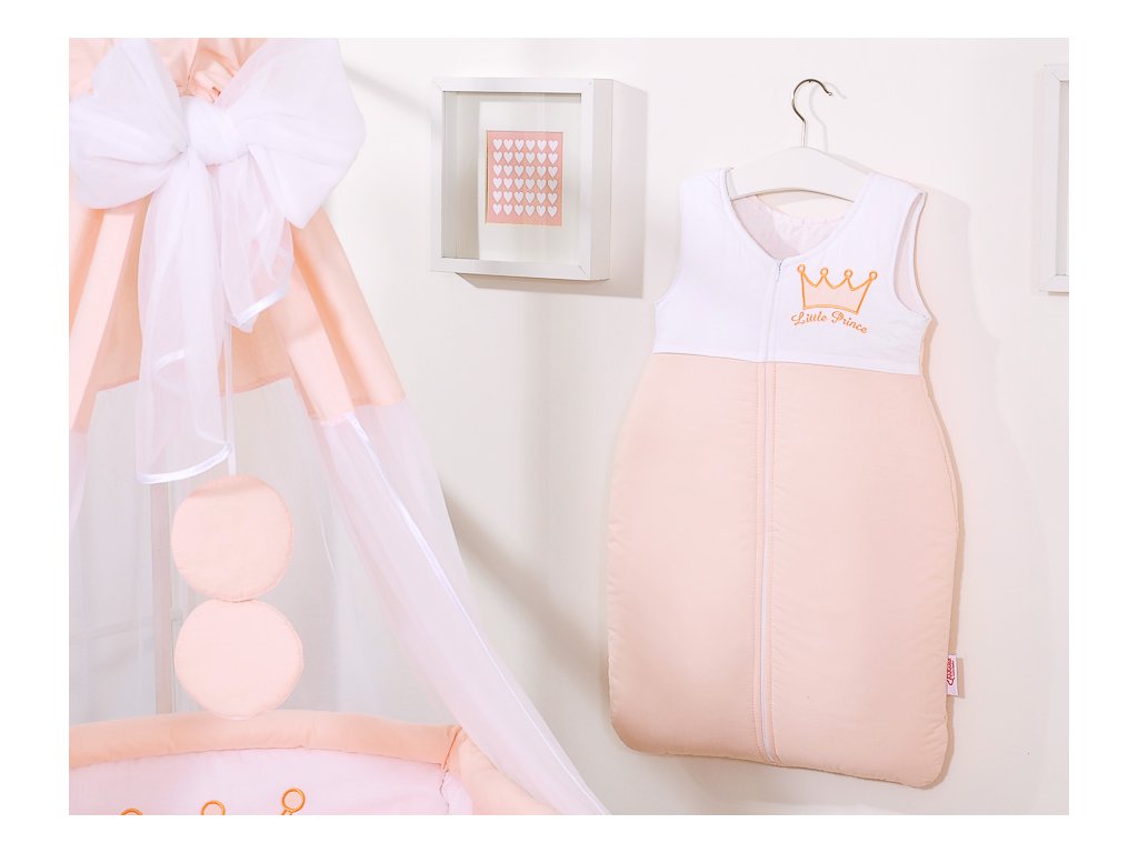 Spací vak/pytel se zapíná na zip po celé délce, ve středu vaku. Je ozdobený výšivkou Koruny a nápisem Little princess