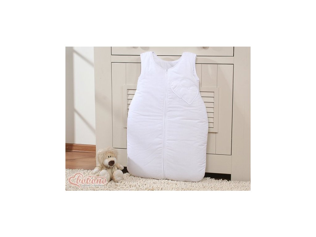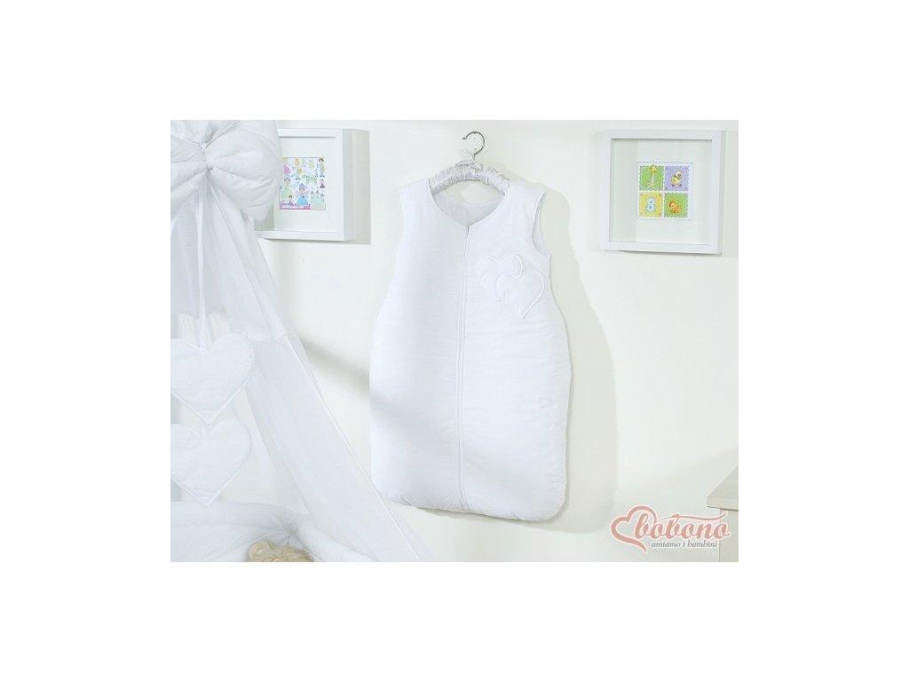 Spací vak/pytel se zapíná na zip po celé délce, ve středu vaku. Je ozdobený nášivkou Srdíček
