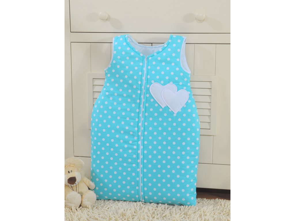 Spací vak - Srdíčka tyrkysová s puntíčky