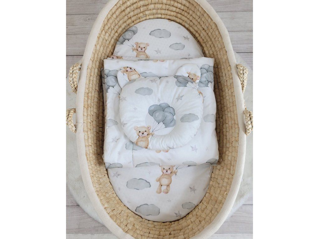 Polštářek ve tvaru medvědí hlavy s dekou můžete používat v kočárku, postýlce, kolébce, koši,..