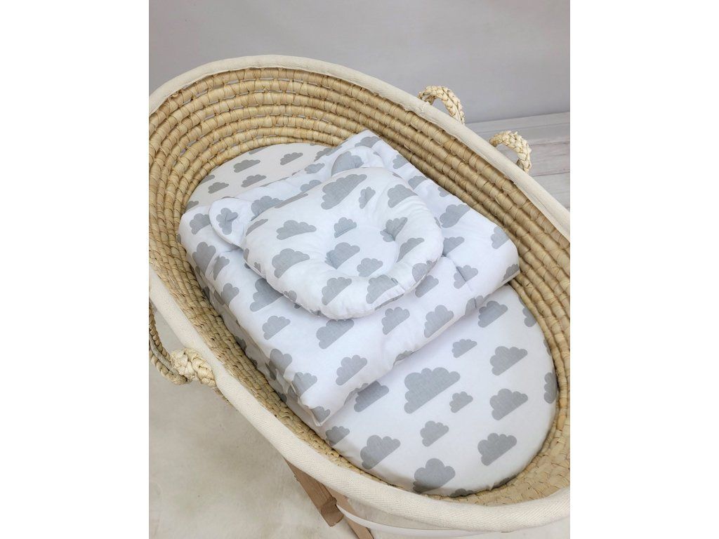 Polštářek s prohlubní, zabraňující zploštění hlavy miminka. Je vyplněn certifikovanou silikonovou netkanou textilií, která je měkká a vzdušná, se speciálně zvolenou gramáží, aby polštář nebyl příliš tlustý a zároveň zajišťoval optimální měkkost a pružnost. Povlak je pevně přišitý, nelze sundat.