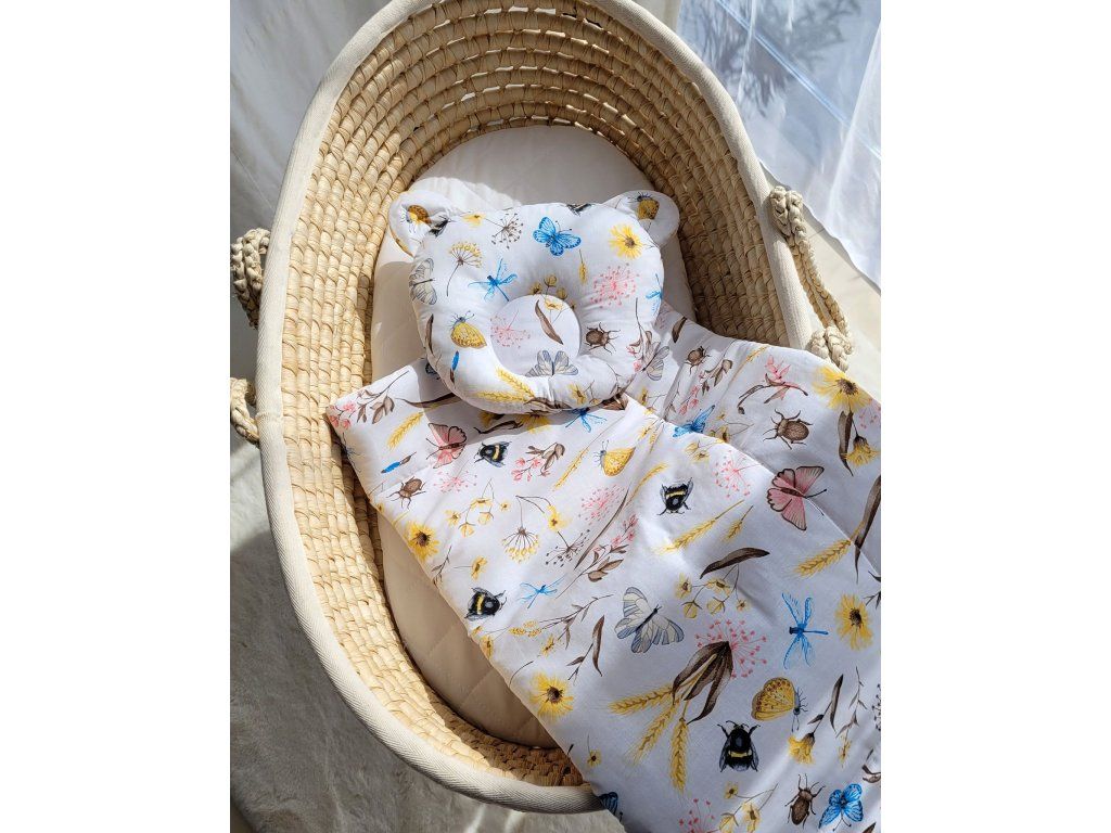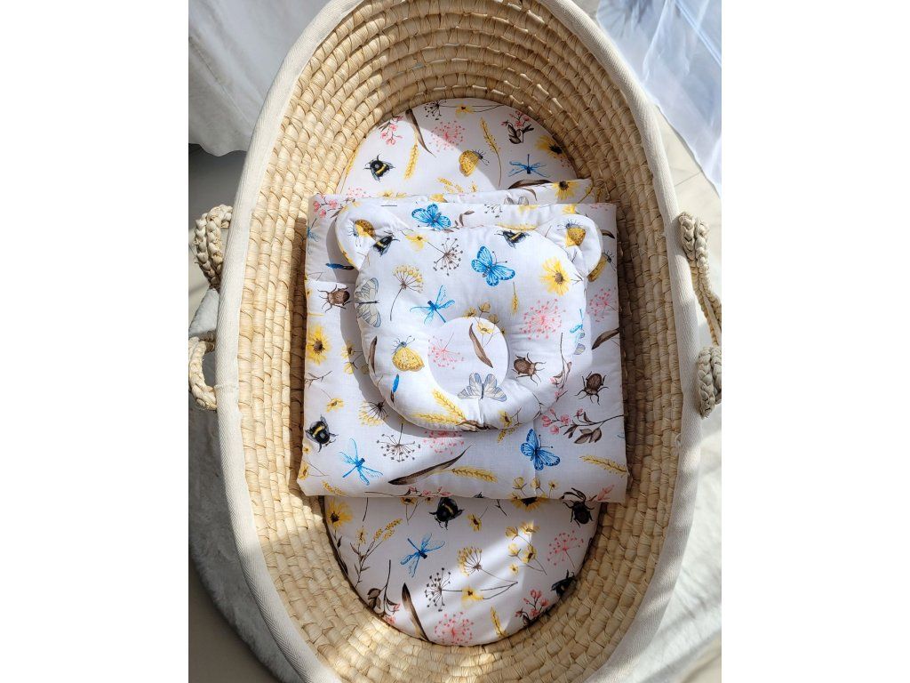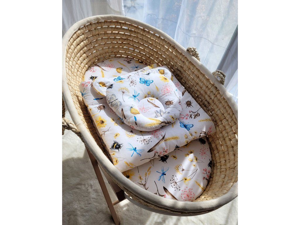 Polštářek s prohlubní, zabraňující zploštění hlavy miminka. Je vyplněn certifikovanou silikonovou netkanou textilií, která je měkká a vzdušná, se speciálně zvolenou gramáží, aby polštář nebyl příliš tlustý a zároveň zajišťoval optimální měkkost a pružnost. Povlak je pevně přišitý, nelze sundat.