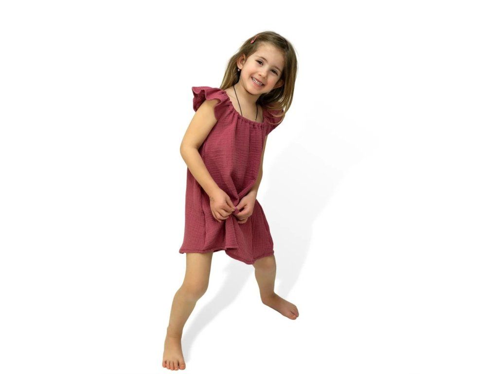 Mušelínové šaty jsou vyrobeny z prvotřídní bavlny s certifikátem Oeko-tex Standard 100, což znamená, že byly vyrobeny bez škodlivých látek a jsou naprosto bezpečné pro citlivou dětskou pokožku. Mušelín nabízí neuvěřitelnou lehkost a vzdušnost, ideální pro teplé letní dny. Šaty jsou vhodné na svatbu, rodinnou oslavu nebo jakýkoli slavnostní okamžik, ale i pro běžné nošení