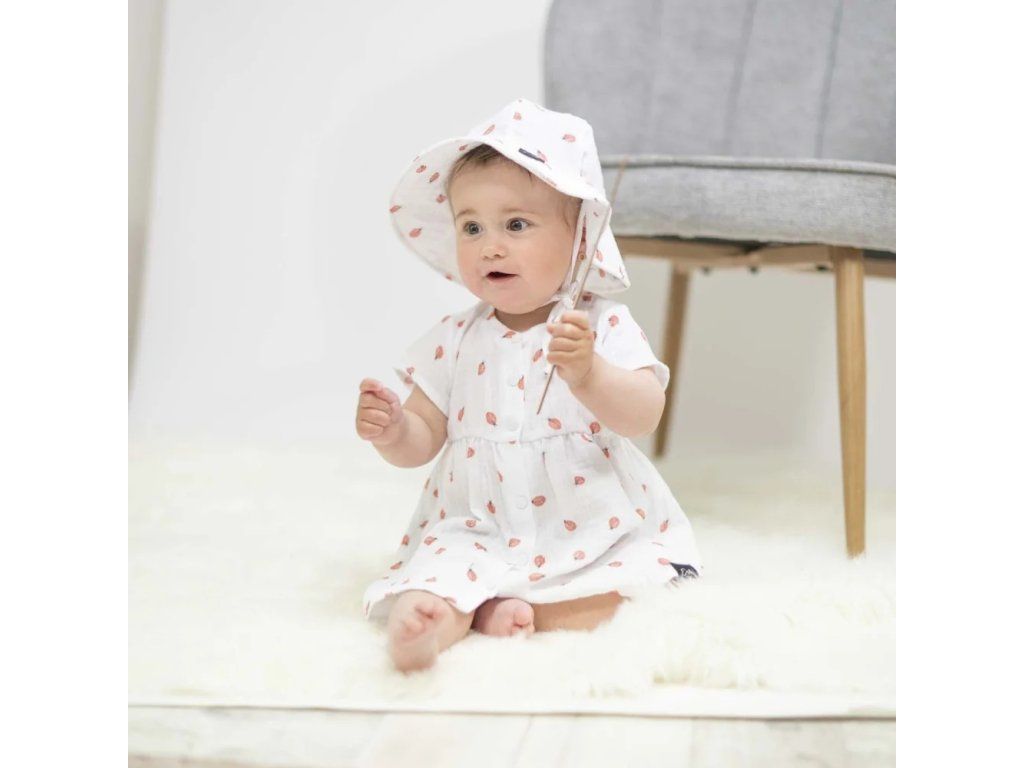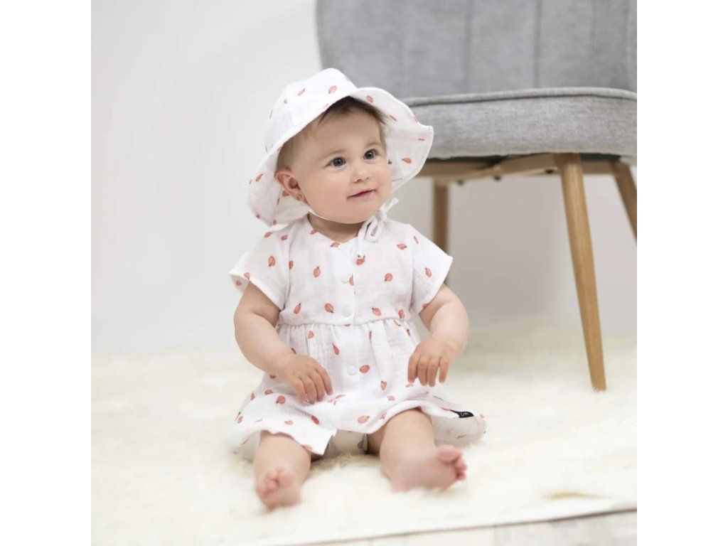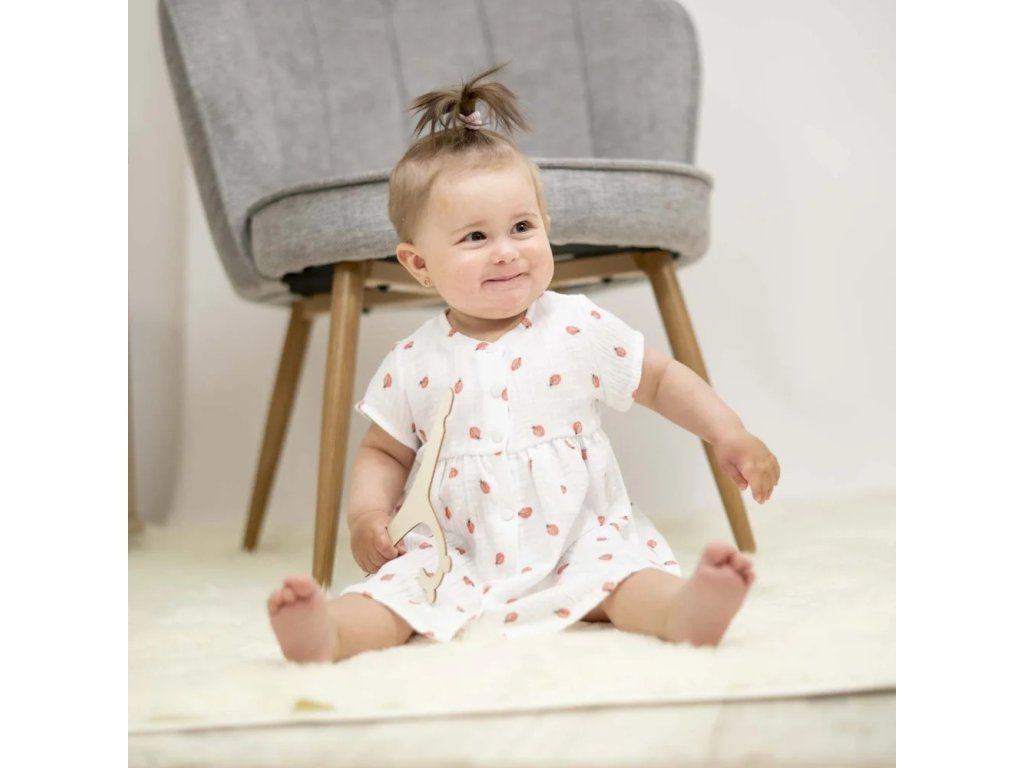 Prvotřídní mušelínová bavlna s certifikátem Oeko-Tex Standard 100 zaručuje, že pokožka holčičky bude vždy v bezpečí. Žádné škodlivé látky, žádné chemikálie - jen čistá přírodní dokonalost. Materiál, který dýchá spolu s ní, i když teploměr ukazuje tropické teploty.