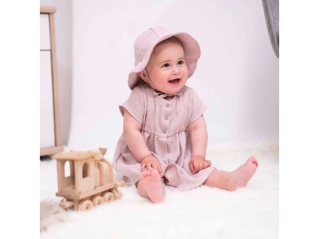 Prvotřídní mušelínová bavlna s certifikátem Oeko-Tex Standard 100 zaručuje, že pokožka holčičky bude vždy v bezpečí. Žádné škodlivé látky, žádné chemikálie - jen čistá přírodní dokonalost. Materiál, který dýchá spolu s ní, i když teploměr ukazuje tropické teploty.