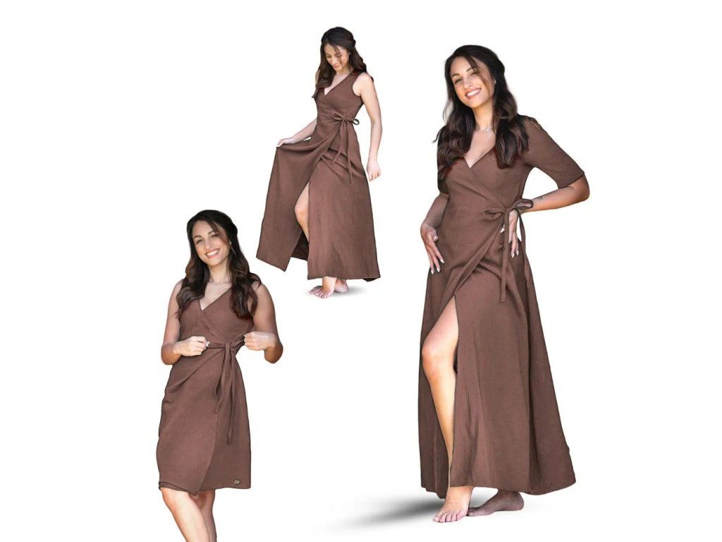 Velikosti: Mušelínové zavinovací šaty Ellena jsou velmi variabilní a odpovídají běžným konfekčním velikostem
