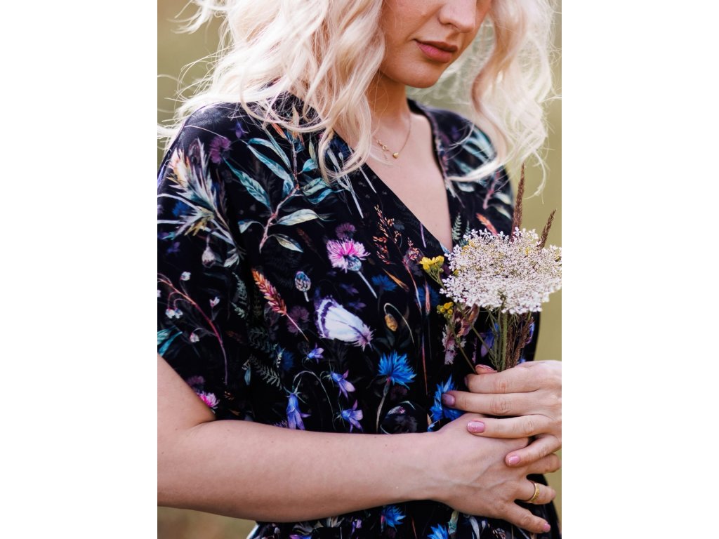 Celé šaty byly navrženy a ušity v Polsku z organické, certifikované viskózy. Prvotřídní certifikace OEKO TEX zaručuje, že tyto šaty neobsahují GMO a škodlivá a toxická barviva.