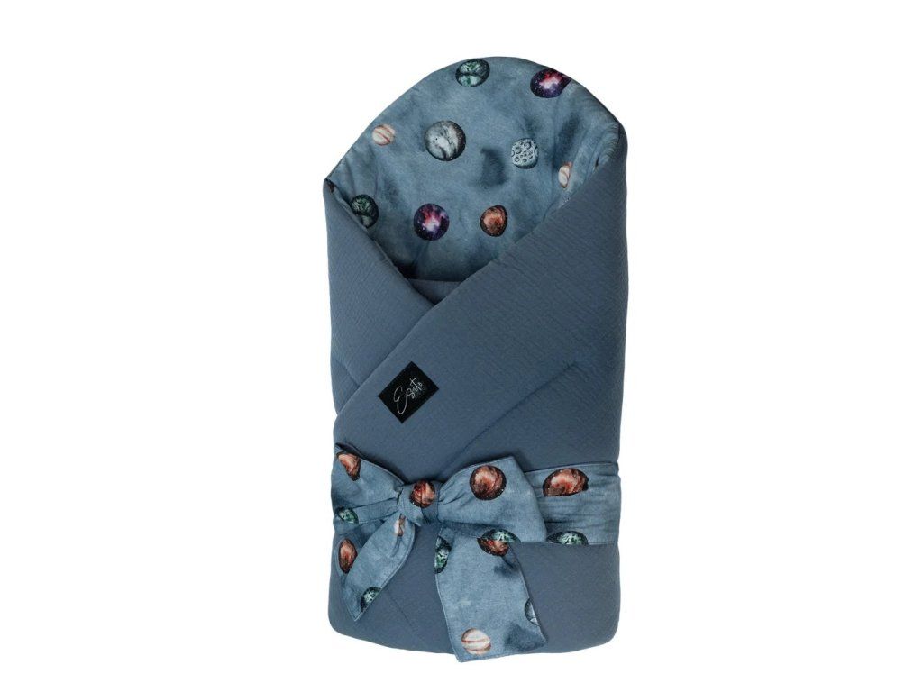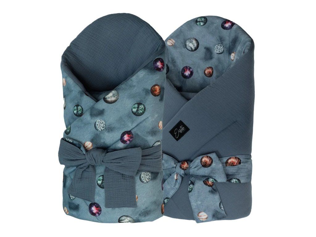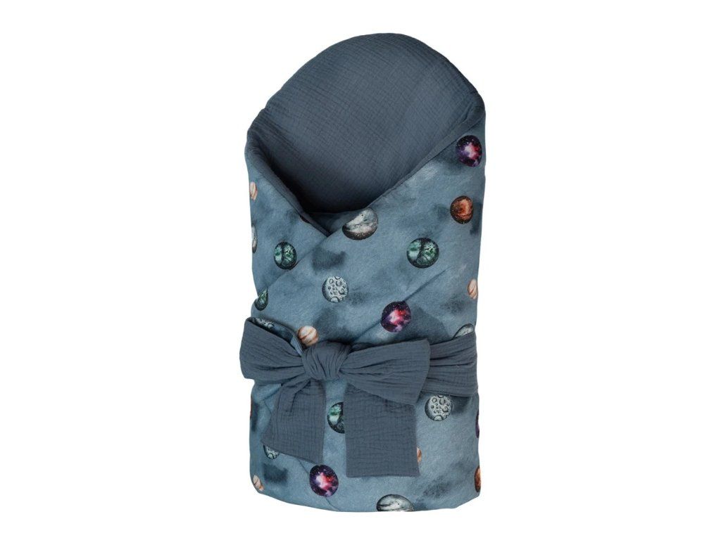 Mušelínová zavinovačka - Planets/denim blue