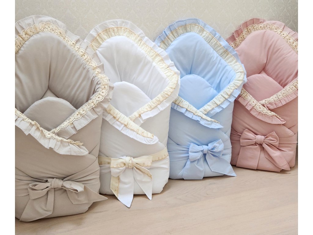 Velmi krásná zavinovačka s volánkem a stuhou. Vhodná i na křtiny.