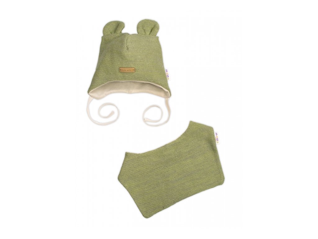 Pletená čepice s bavlněnou podšívkou a šátkem