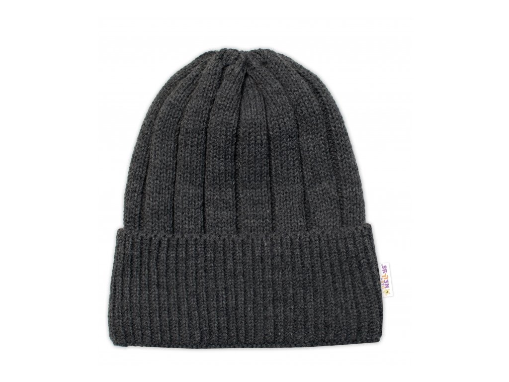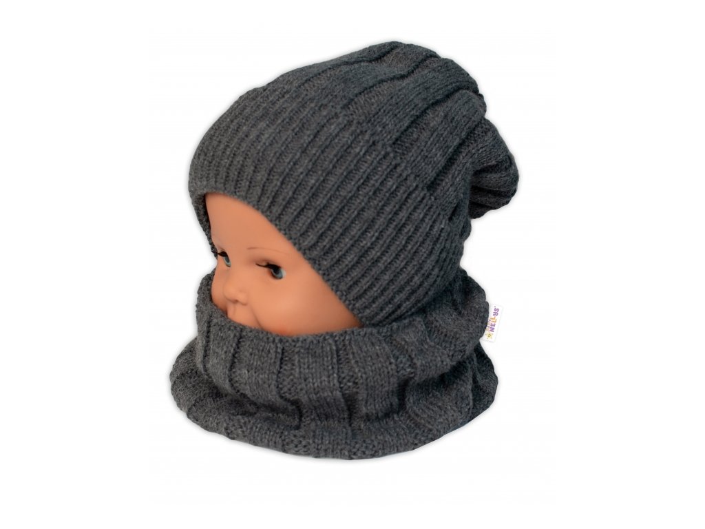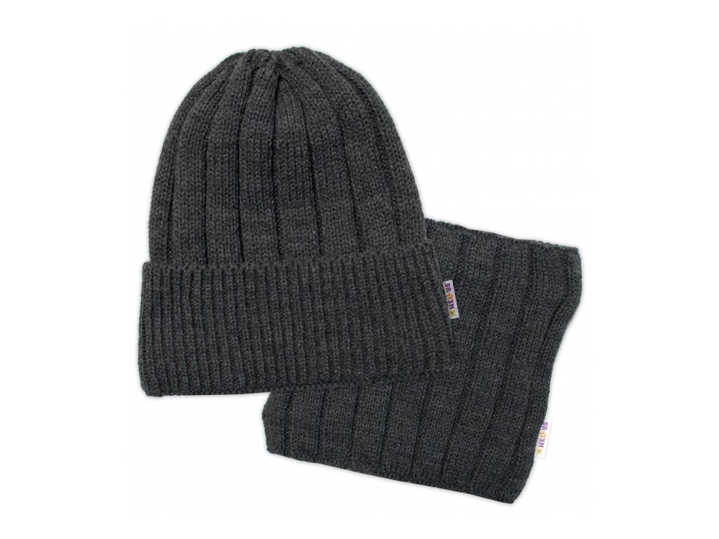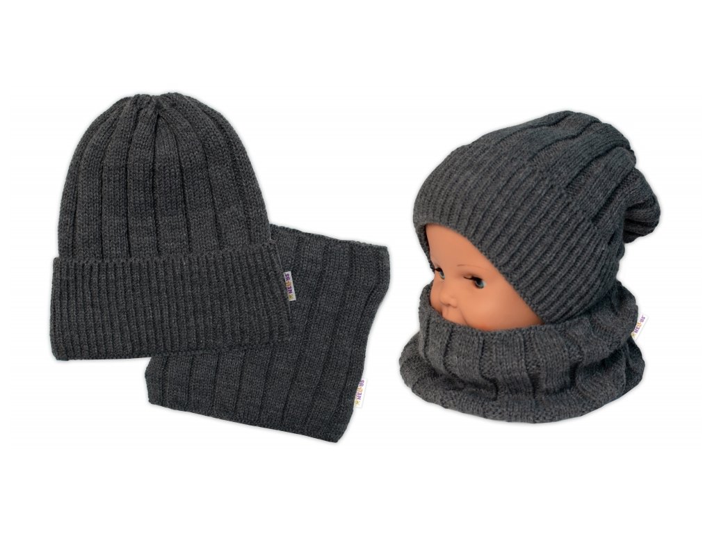 Zimní čepice a komínek - Tm. šedá