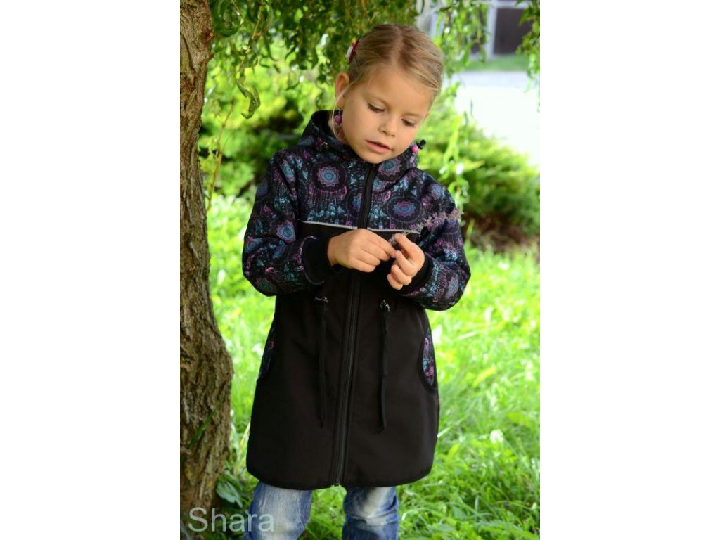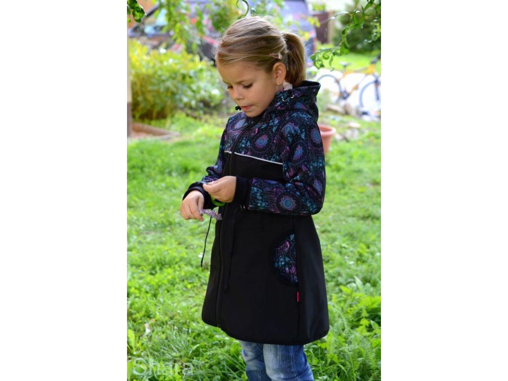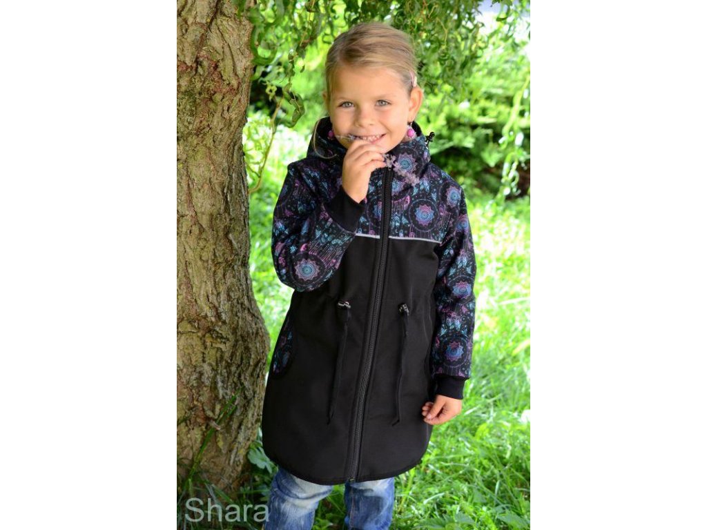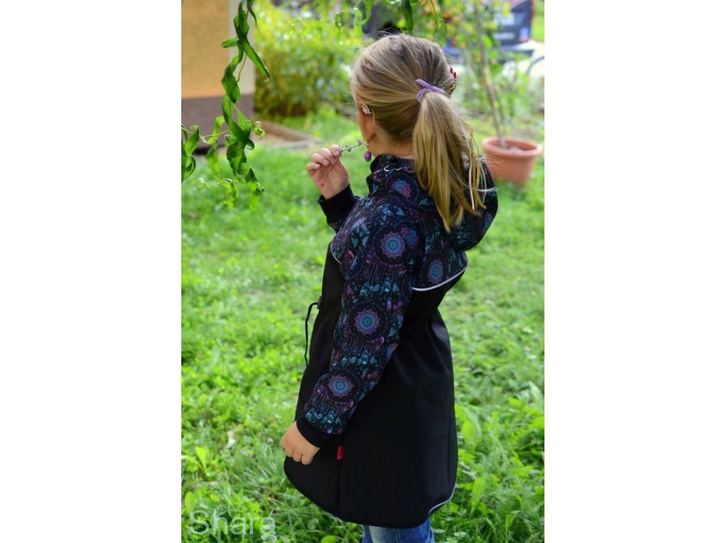 Dívčí softshellový kabát se šňůrkou - Černá/lapače snů