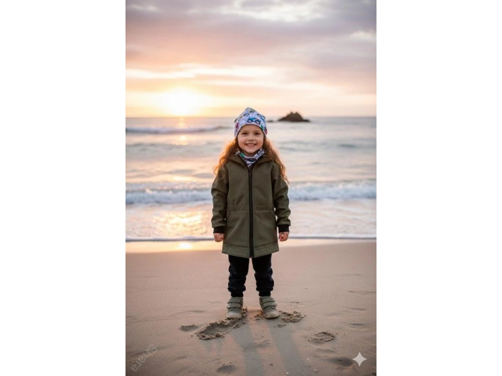Softshellová bunda dětská, delší/parka - Oliva