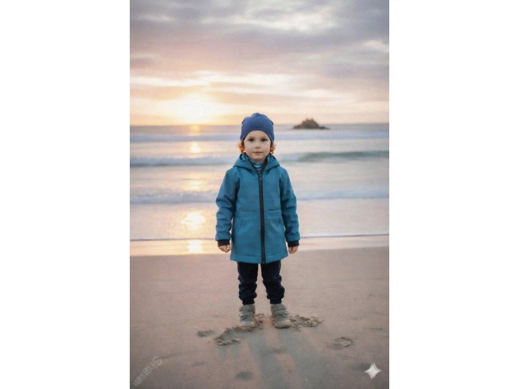 Softshellová bunda dětská, delší/parka - Petrolejová