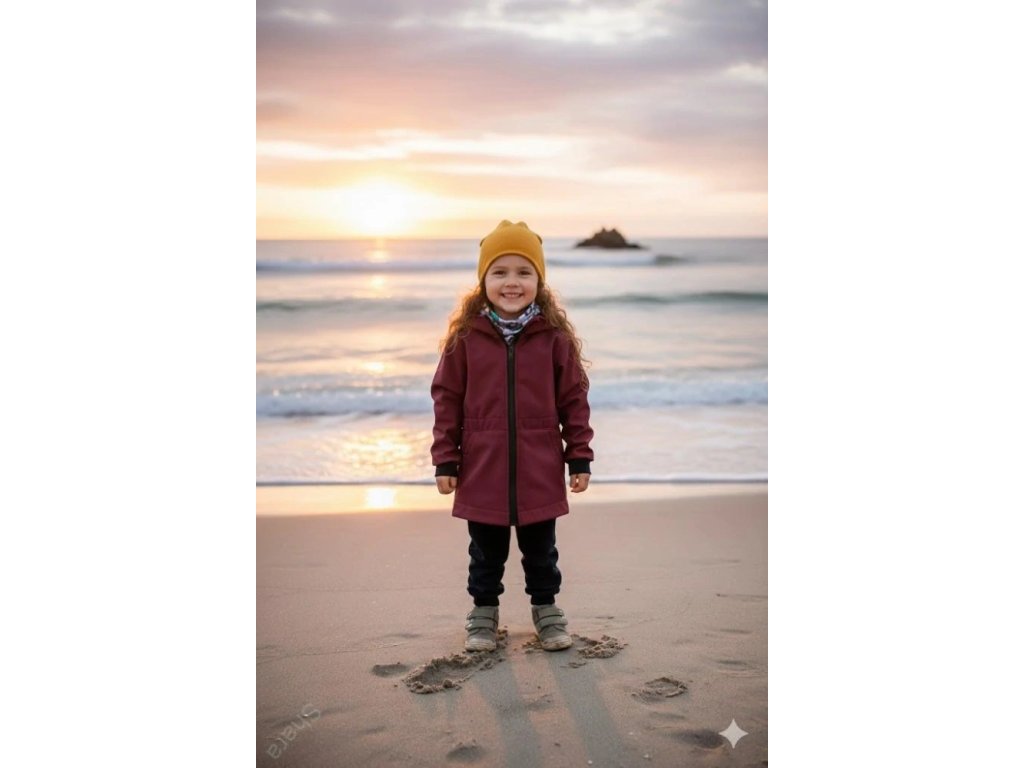 Softshellová bunda dětská, delší/parka - Vínová
