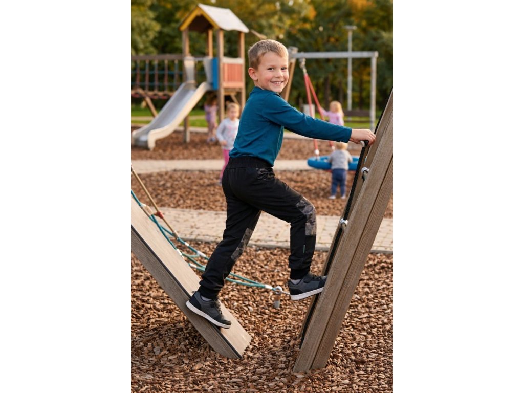 Dětské kalhoty softshellové - Černá + maskáč šedý
