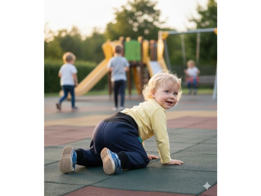 Délka kalhot je do nápletu, který podrží delší nohavici, aby kalhoty s děťátkem mohly kousek poporůst