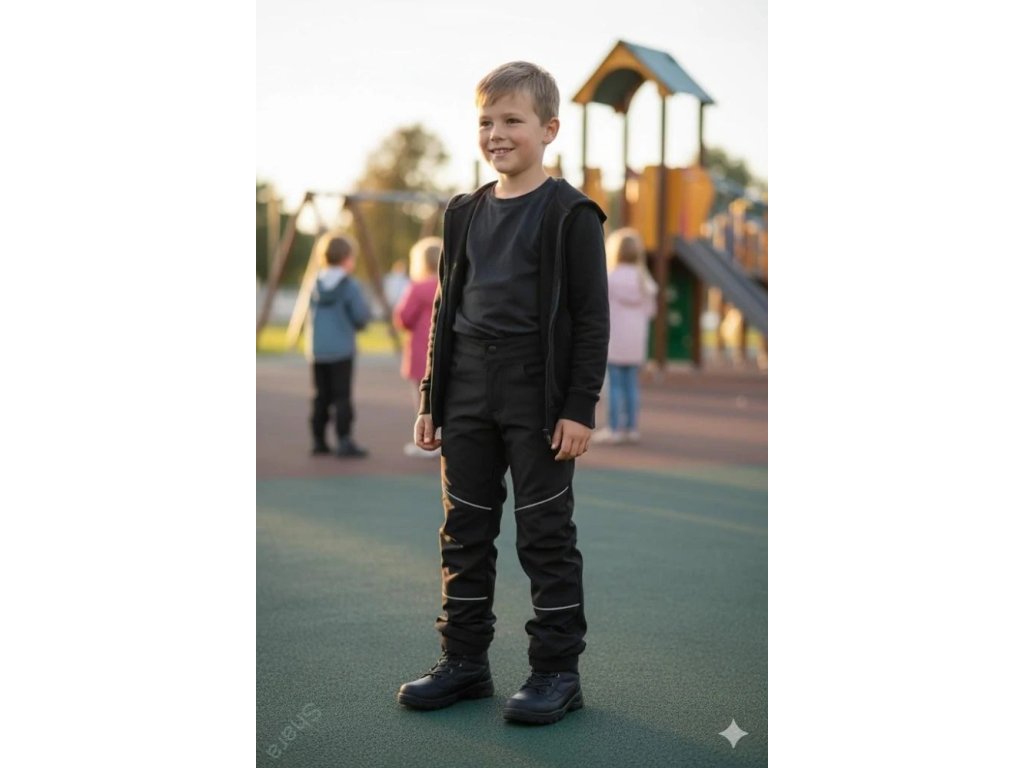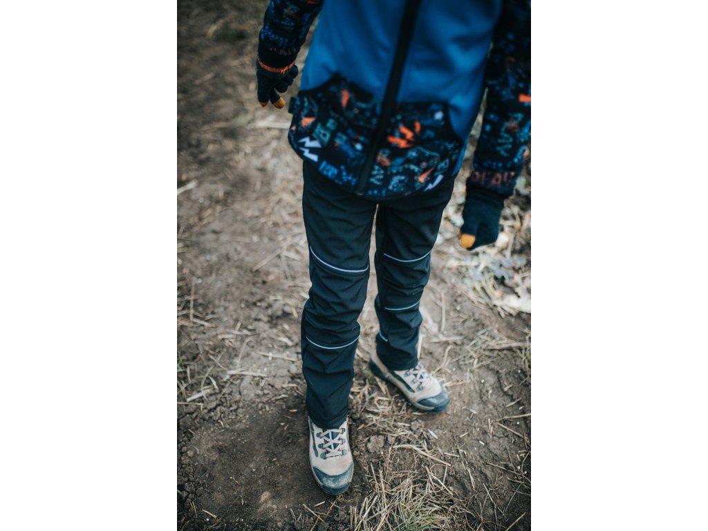 Softshellové dětské kalhoty s knoflíkem a reflexy - Černá