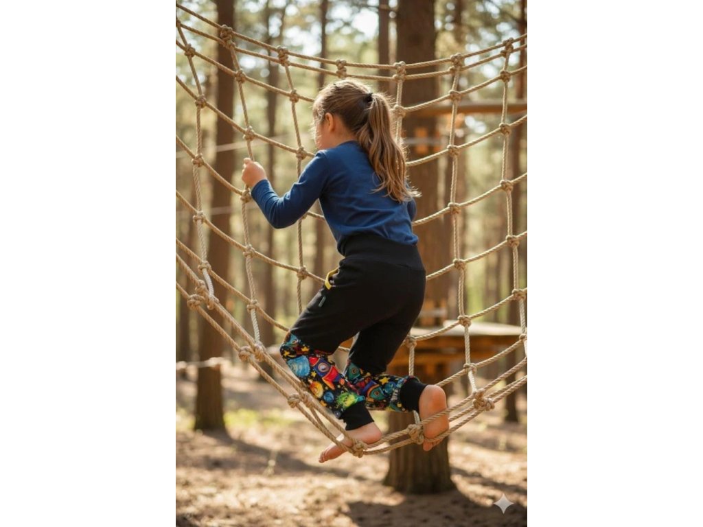Softshellové kalhoty s náplety dětské - Černá a vesmírné příšerky