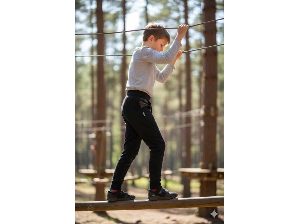 Na nohavicích je také pružný náplet, aby kalhoty s dítětem mohly kousek poporůst