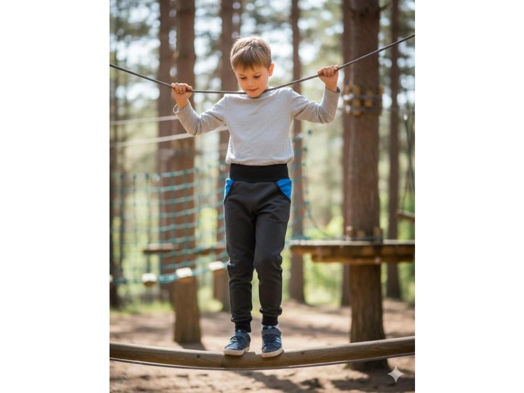 Na nohavicích je také pružný náplet, aby kalhoty s dítětem mohly kousek poporůst