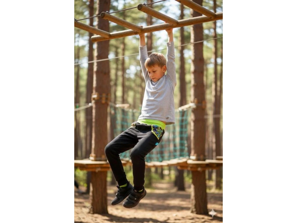 Softshellové kalhoty s náplety dětské - Černá/skate/neon