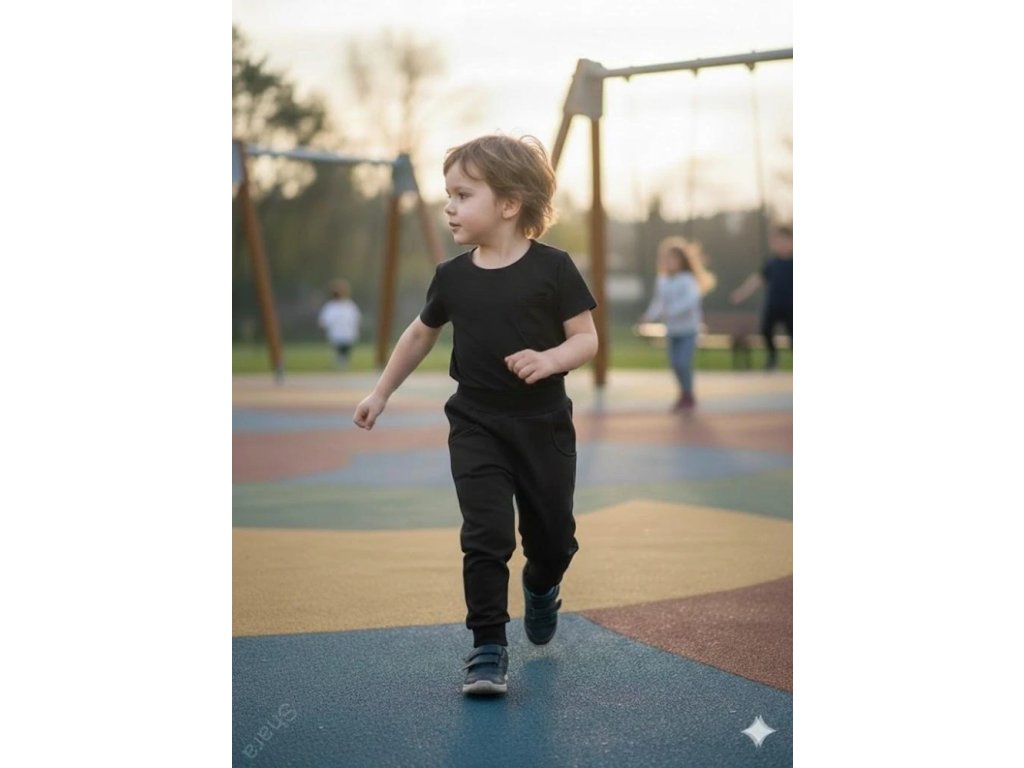 Na nohavicích je také pružný náplet, aby kalhoty s dítětem mohly kousek poporůst
