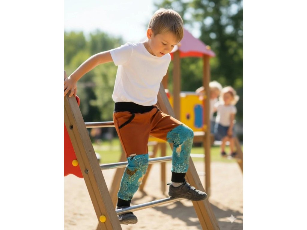 Na nohavicích je také pružný náplet, aby kalhoty s dítětem mohly kousek poporůst