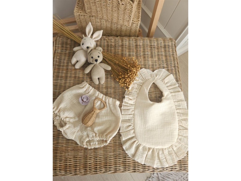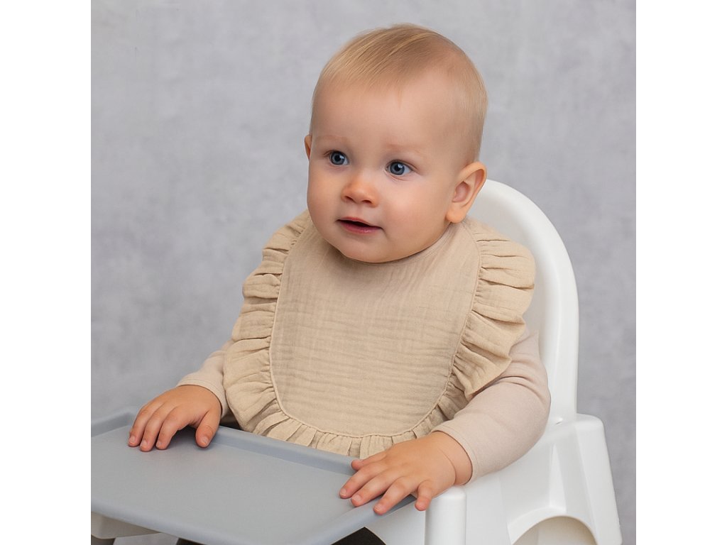 Nepromokavý mušelínový bryndáček s volánkem - Nature béžová