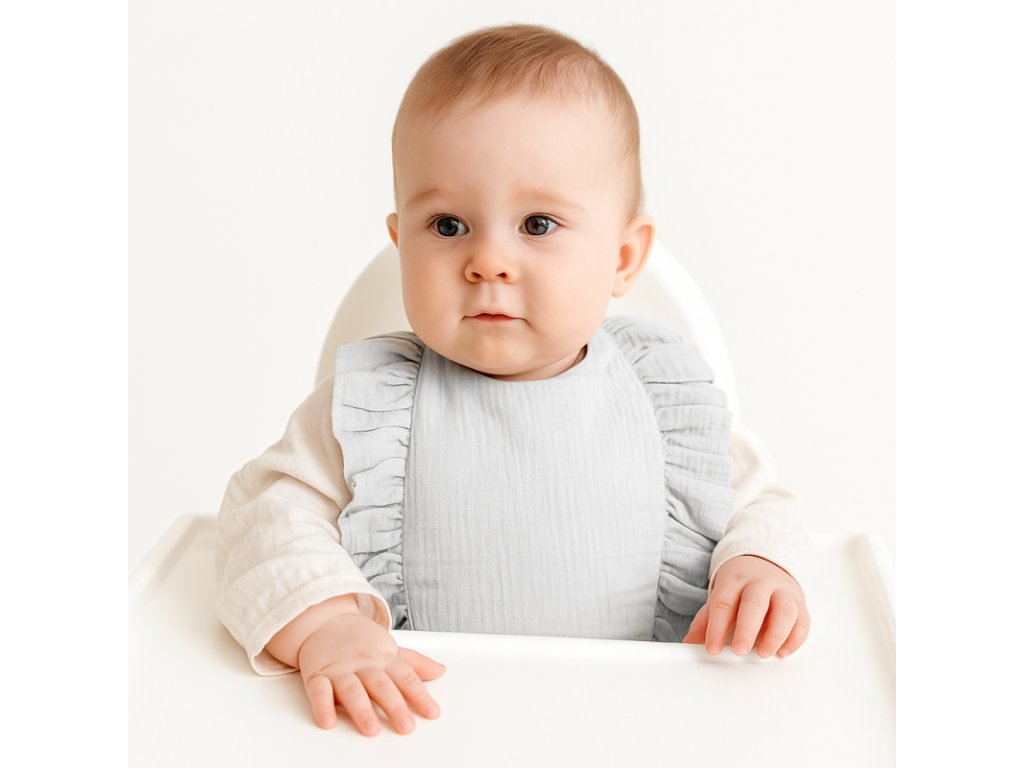 Nepromokavý mušelínový bryndáček s volánkem - Nature šedá