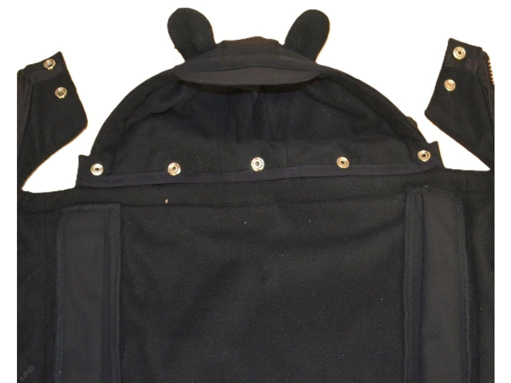 Praktické odepínání kapucky u vsadky - vsadka má přitom stále krytí krku maminky nebo tatínka